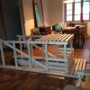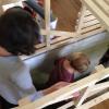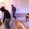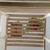 Un trou dangereux occupait le centre des 2 pièces d'habitation, il a été comblé par une structure fine en bois, rigidifiée par les assemblages moisés et les main-courantes qui en contreventent la structure. La hauteur, la largeur et l'encombrement ont été optimisés pour avoir un impact minimum à la fluidité de l'espace et permettre de poser de nouveaux objets. La structure sera mise en lumière, des plantes viendront en épouser les formes.