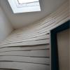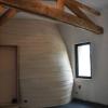 L'étage de la future maison est distribué par un couloir de forme molle qui tranche avec les parois périphériques de l'appartement lisses et blanches. Inflexion, transition, contraste, La structure décline son vocabulaire et donne un caractère singulier à chaque espace.