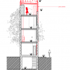 La maison existante a la forme d'un triangle très étroit qui s'étire tout en hauteur. Le projet est de surélever le dernier niveau afin de le rendre habitable et de donner accès aux chats de la maison à la nouvelle toiture ! La façade deviendra le support d'une fresque réalisée par Slaven Lunar Kosanovic.