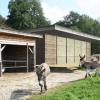 Ce pavillon pour les week-end est prévu en ossature bois préfabriquée, orientée plein Sud avec une optimisation des apports solaires. Cette construction est pensée comme un agrandissement naturel de la cabane aux ânes existante.
