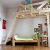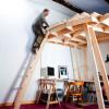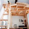 L'originalité de ces mezzanines réside dans leur simplicité constructive avec l'utilisation de ces 2 matériaux, le bois et la vis. L'originalité de ces mezzanines réside dans l'utilisation de ces deux seuls outils, une visseuse et une scie égoïne. L'originalité de ces mezzanines réside dans leur complexité formelle avec ces matériaux et ces outils simples. Elaboré à partir d'un dessin préparatoire, chaque pièce en bois vient renforcer la première et participe à la composition d'ensemble, la répétition et l'adaptation d'une pièce en bois à l'autre et à l'espace crée la découverte de la structure finale.